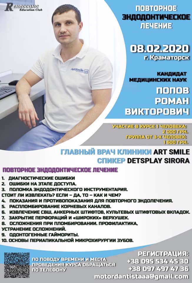 8 февраля 2020 года в г. Краматорск будет проходить тренинг на тему "Повторное эндодонтическое лечение"